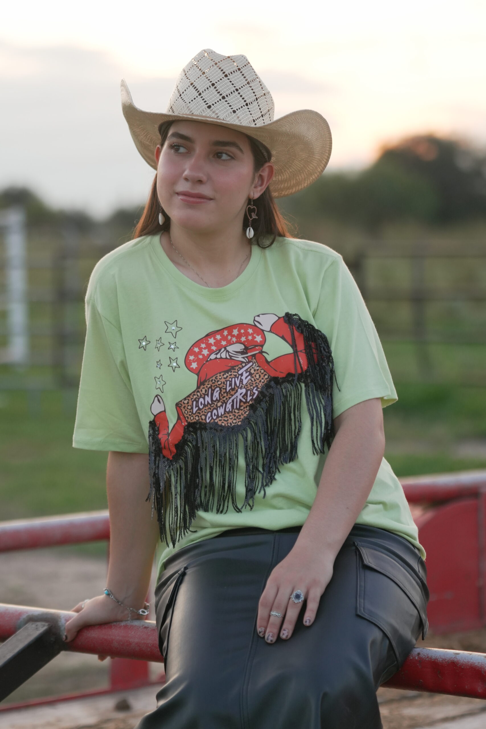 La BLUSA LONG LIVE COWGIRLS es la prenda perfecta para darle un toque único y deslumbrante a tu estilo casual. Confeccionada con un tejido suave que imita la mezclilla, esta blusa vaquera destaca por los detalles que están cuidadosamente distribuidos, aportando un destello sutil y elegante a cada movimiento.